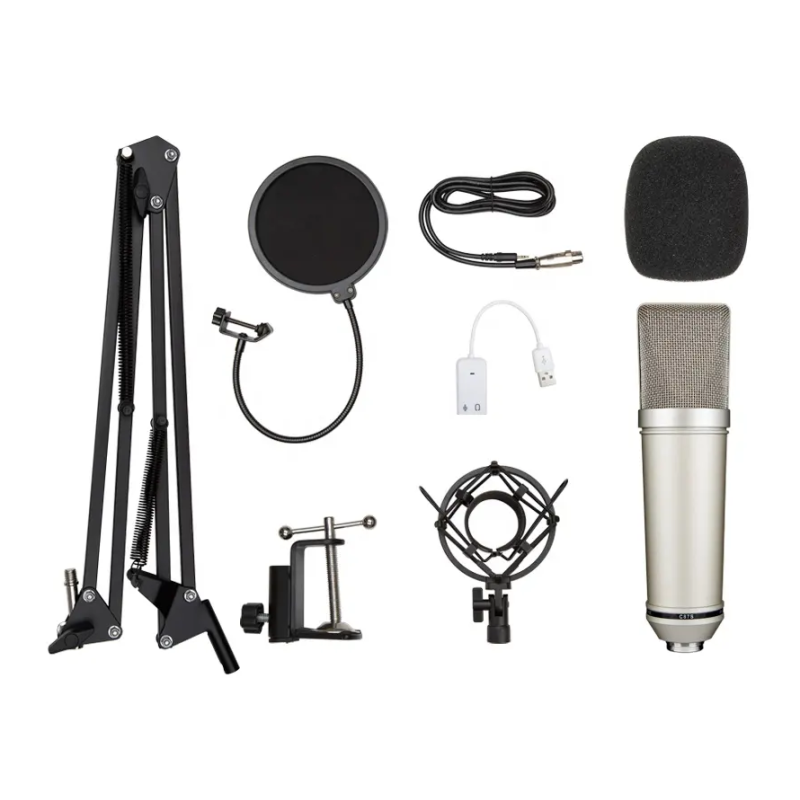 Модель CU-87X отличается богатой комплектацией: вместе с микрофонов поставляются антивибрационный держатель-растяжка, настольная стойка-пантограф, поп-фильтр, мини-интерфейс USB, насадка-ветрозащита и микрофонный кабель на разъемах XLR-Jack 3.5.