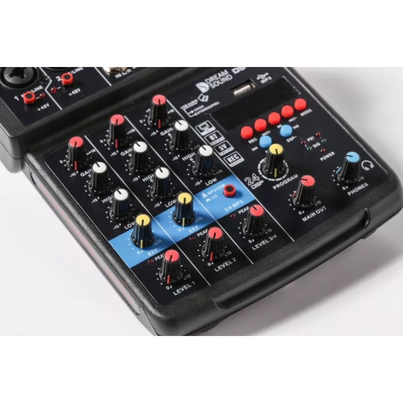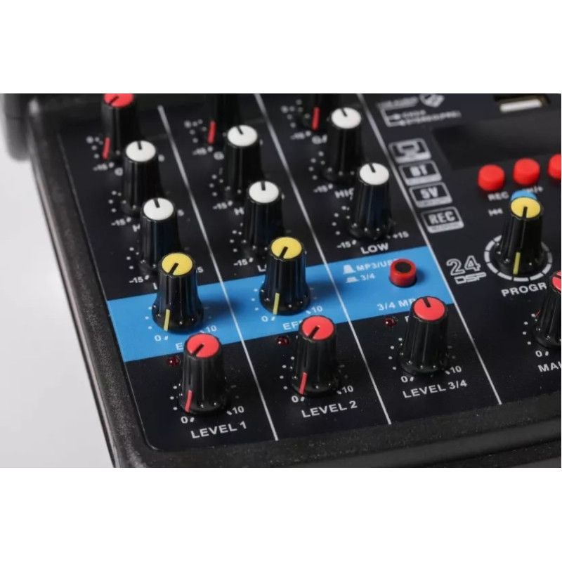 - Возможность подключения к POWER Bank или компьютеру для питания микшера обеспечивает мобильное применение микшера