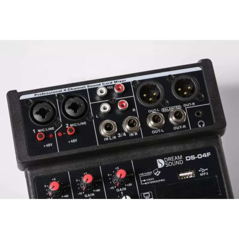 - Микшер с 4-мя входами (2 входа универсальный разъем Микрофон/линия)