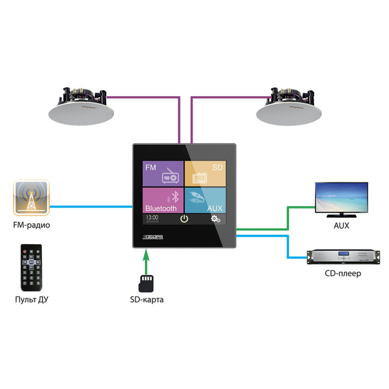 - Источник звука: Встроенный проигрыватель, FM, AUX, SD.