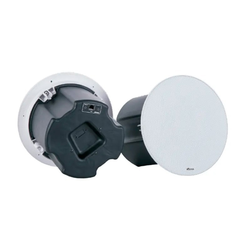 DSS-GDT8 - Потолочный активный громкоговоритель, RJ45, DSP процессор, излучатели НЧ 6" + ВЧ 1", корпус ABS, 30 Вт, 100Гц – 18кГц, SPL 112 дБ, 100°x100°, питание PoE/DC 24В/3А, 281x247x245 мм, 4,2 кг.
