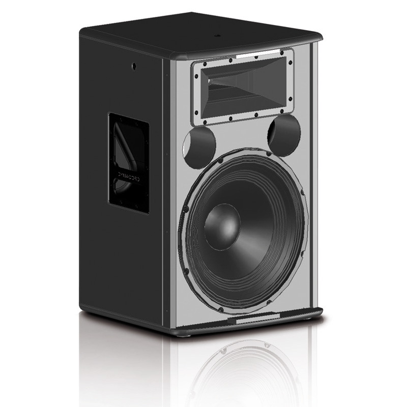 Компактный двухполосный полнодиапазонный акустический кабинет Dynacord C 15.2 мощностью 500 Вт RMS (пиковая мощность 2000 Вт), в корпусе трапециевидной формы, оснащенный 15-дюймовым НЧ-динамиком EV SMX 2151 и компрессионным драйвером EV DH3 (от 1650 Гц), нагруженным на рупор постоянной направленности 90°х50°.
