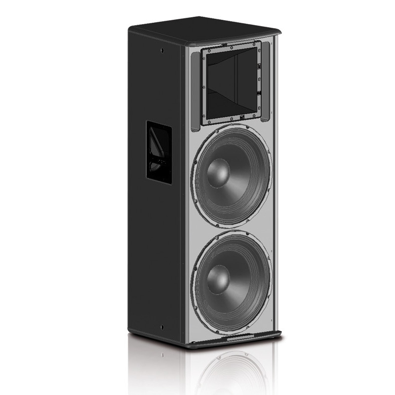 Невероятно высокий уровень звукового давления до 139 дБ обеспечивает компактный двухполосный полнодиапазонный акустический кабинет Dynacord C 25.2 мощностью 1000 Вт RMS (пиковая мощность 4000 Вт), оснащенный двумя 15-дюймовым НЧ динамиками EV SMX 2151 и компрессионным драйвером EV ND2-8 (от 1750 Гц), нагруженным на рупор постоянной направленности 90°х40°.