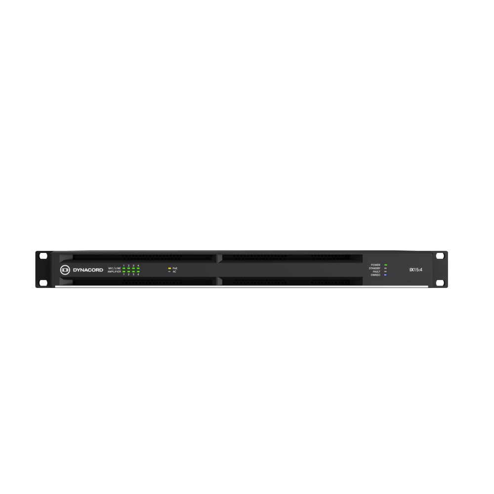 The IX15:4 is a 4-channel networked DSP amplifier with 1.5 kW total output power. Capable of driving Hi-Z or Lo-Z loads with powerTANK technology, the IX15:4 is ideal for a wide range of applications including sports venues, houses of worship, live performance spaces and hospitality.