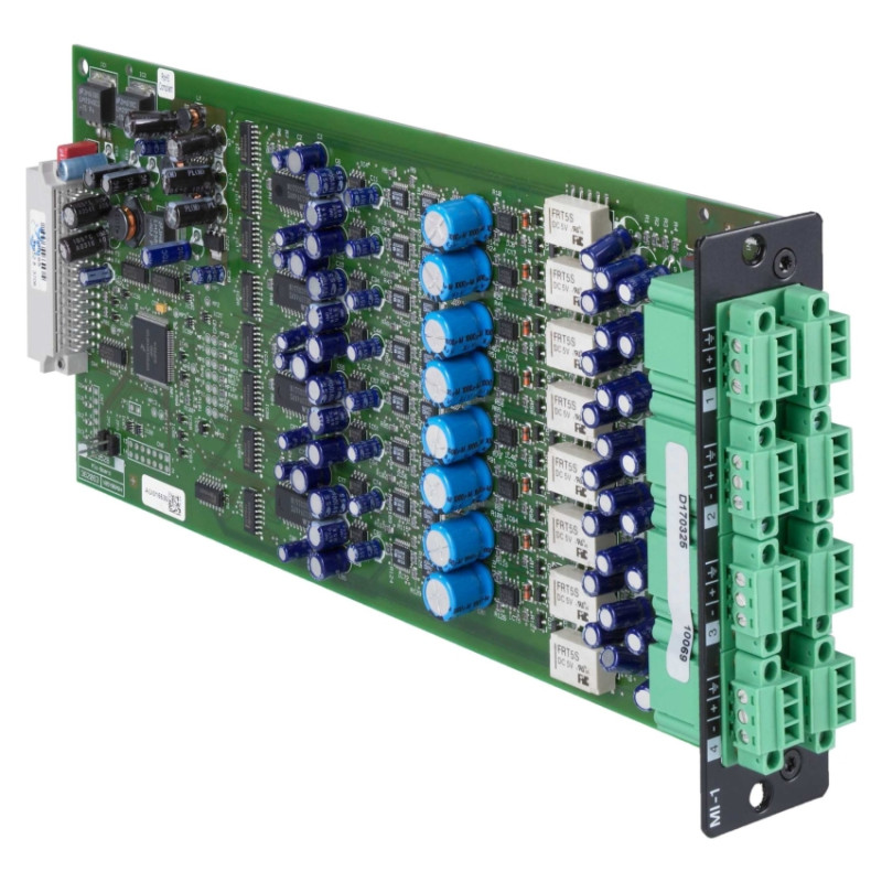 - Этот микрофонный входной модуль дает возможность подключать до восьми аналоговых входных сигналов линейного или микрофонного уровня.