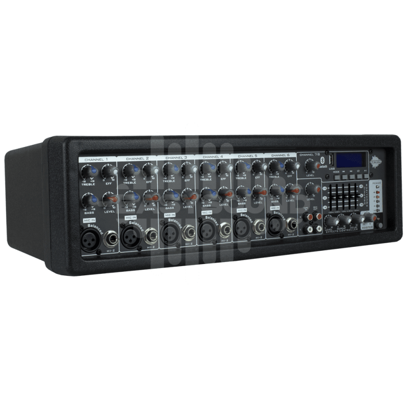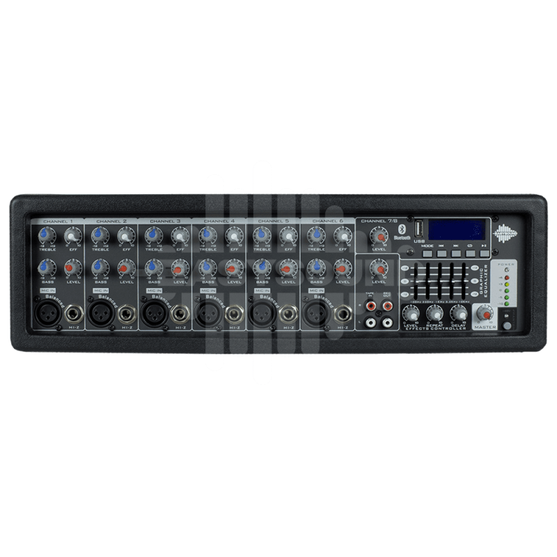 - Эквалайзер микрофонных входов (EQ MIC IN) - ВЧ: +/- 12 дБ, НЧ: +/- 12 дБ
