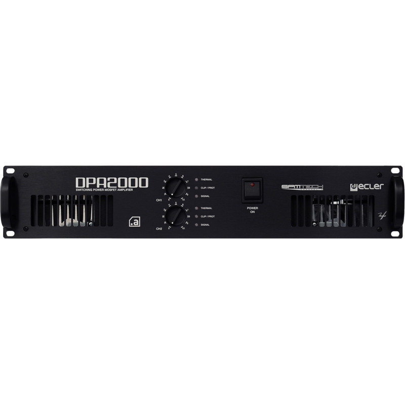 Ecler DPA2000 - Устройство имеет фильтр инфранизких частот, системы защиты, два режима работы усилителя – мостовой, стерео. Балансные входы.