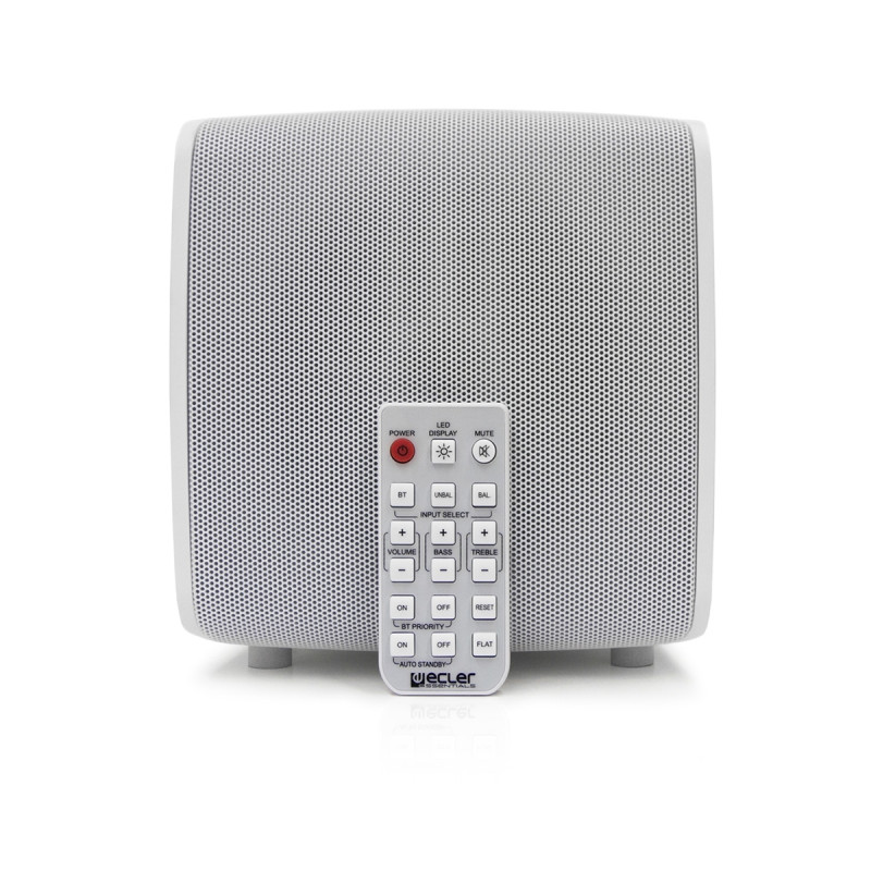 Ecler eMOTUS5PBWH – Активный стереокомплект двухполосных акустических систем 5'', состоящий из пассивного и активного громкоговорителей мощностью 2x25 Вт.