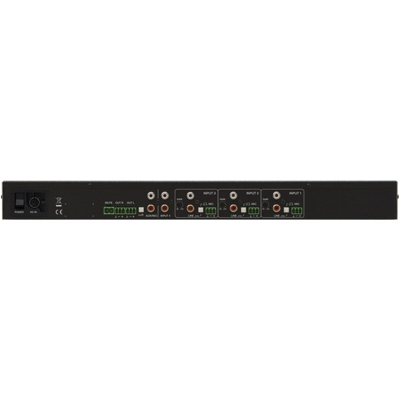 | Входы | 6 – микрофонный: балансное аудиомоно, клеммный блок 7 – линейный: аудиостерео, разъемы 2xRCA (розетка) 1 – замыкаемые контакты mute, клеммный блок |