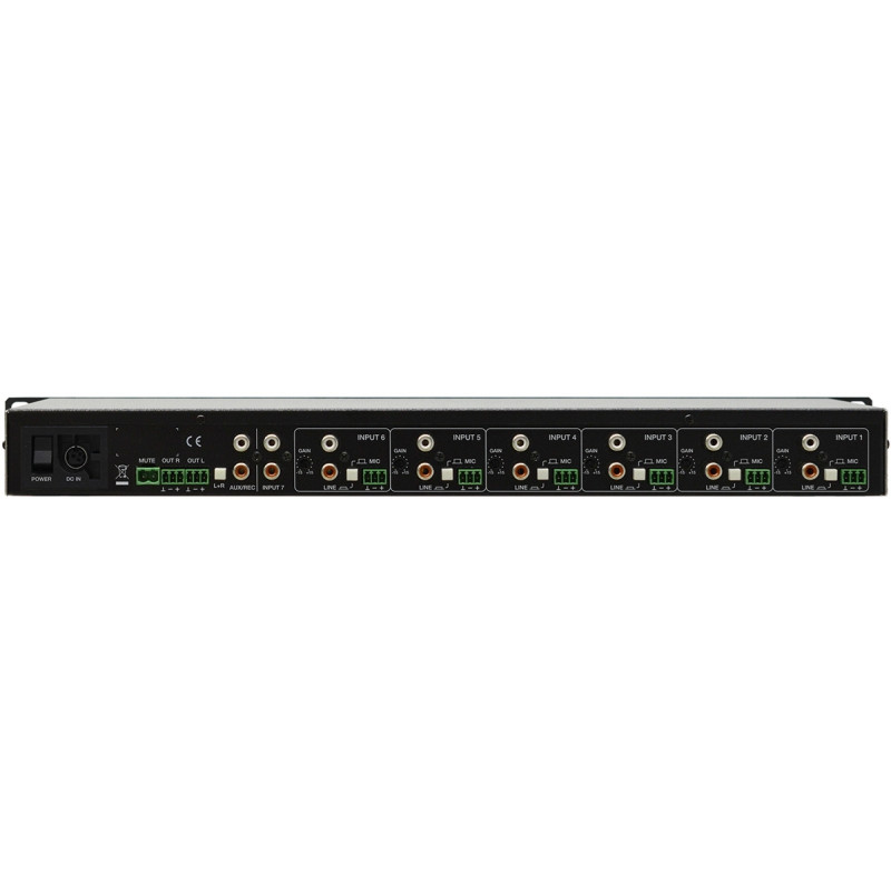 | Входы | 6 – микрофонный: балансное аудиомоно, клеммный блок 7 – линейный: аудиостерео, разъемы 2xRCA (розетка) 1 – замыкаемые контакты mute, клеммный блок |