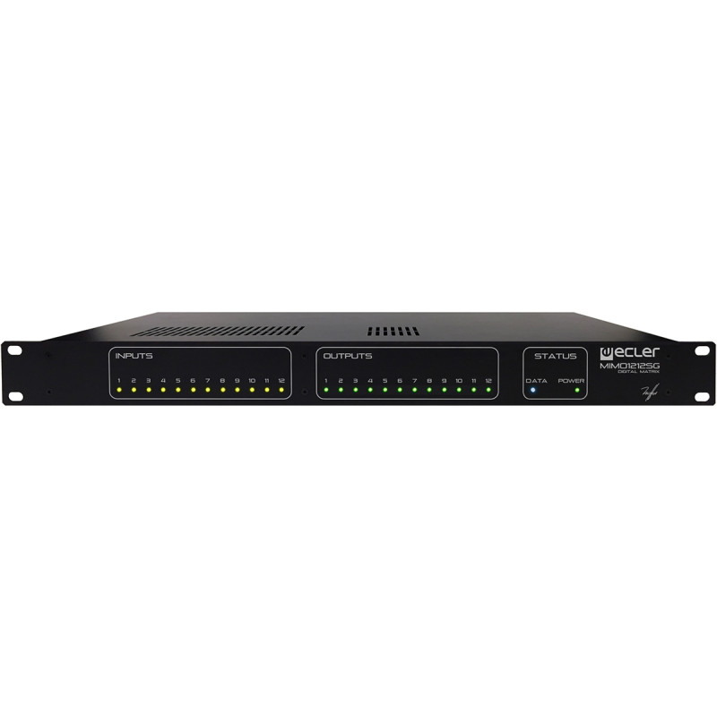 Ecler MIMO1212SG – Цифровая матрица аудиосигналов, DSP-аудиопроцессор серии MIMO с фиксированной архитектурой, 12 универсальных входов (Mic/Line) с включаемым фантомным питанием 48 В, 12 выходов.