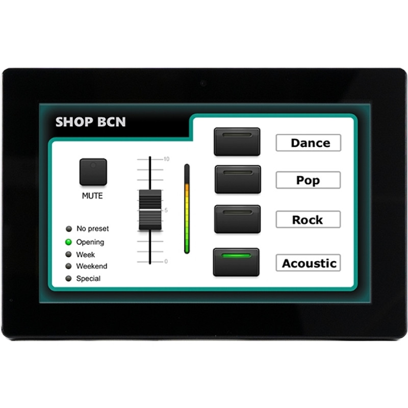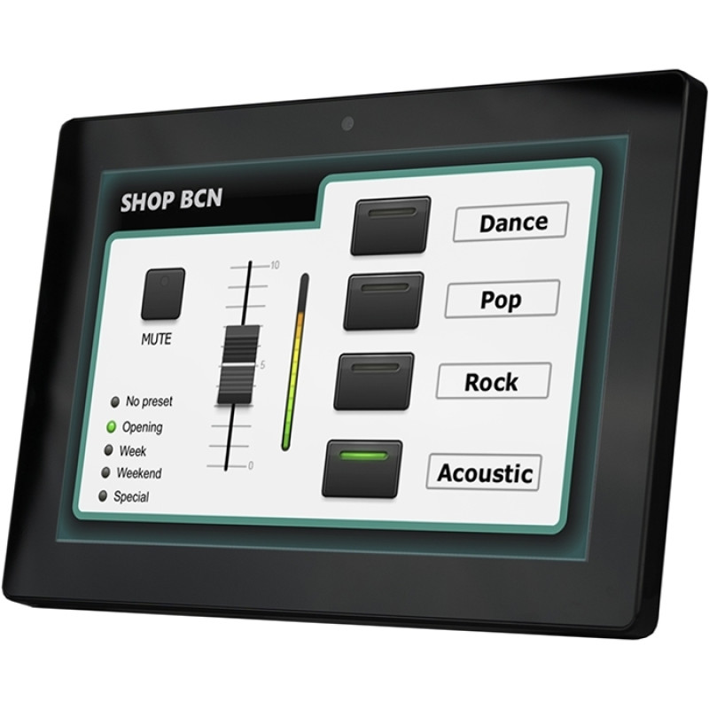 Может быть настроена для работы в качестве панели управления одной зоной или глобального многозонного контроллера. Отображает конфигурируемые пользователем панели управления, которые могут контролировать громкость, выбирать источник звука, вызывать пресеты, общаться через TCP / UDP с внешними устройствами. Питание по PoE или c внешнего источника питания. Крепление стандарта VESA 75. Настраивается с помощью специального ПО EclerNet Manager.