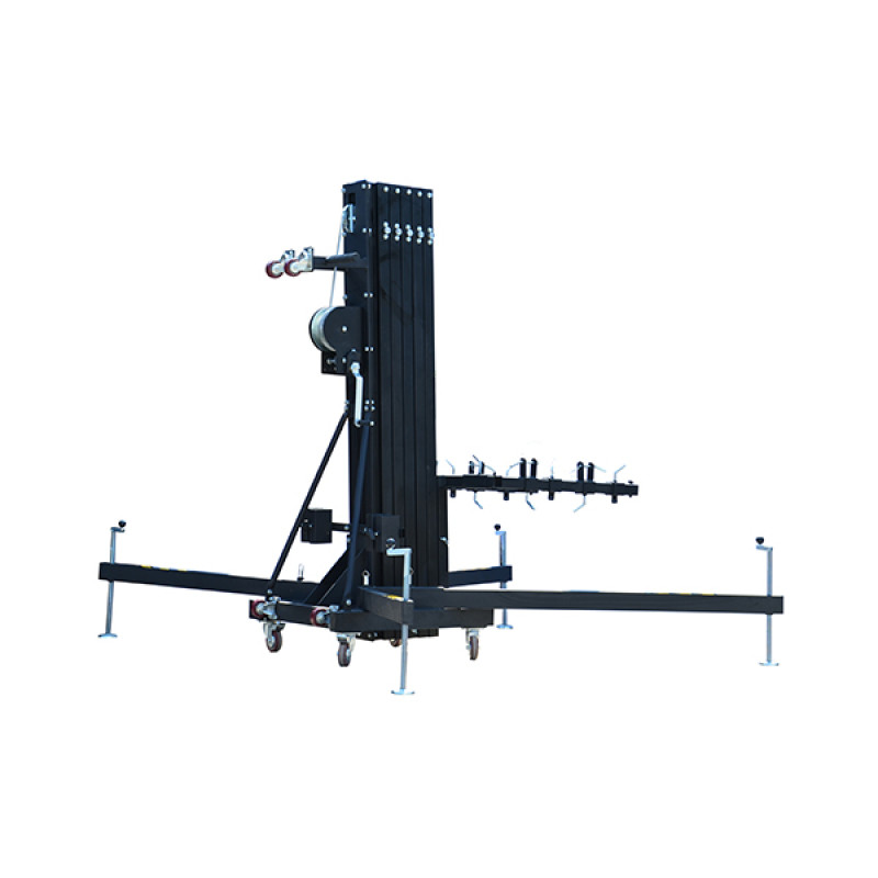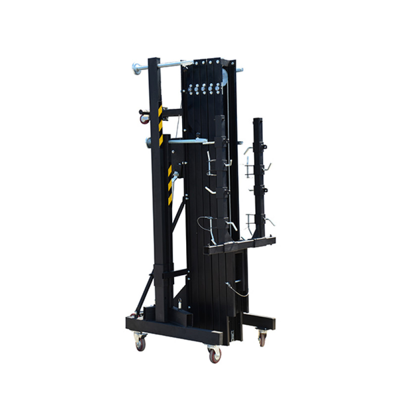 ECO ALS001B - Универсальный элеватор фронтальной загрузки для линейных массивов, светодиодных экранов и ферм, с 5 секциями и возможностью блокировать на разной высоте, с транспортировочными колесами, максимальная загрузка 270 кг, высота регулируемая 2,05-8,00 м.