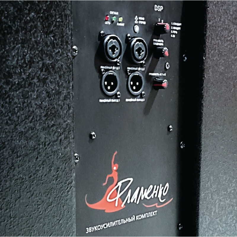 В состав ФЛАМЕНКО входят пять акустических систем - 4 широкополосные и сабвуфер, с размещённым в нём 3-канальным усилительным модулем. Модуль включает в свою конструкцию три оконечных усилителя, управляемых DSP с четырьмя предустановленными пресетами и многоформатный аудиоплеер, позволяющий воспроизводить файлы с USB-Flash-карты или посредством Bluetooth.
