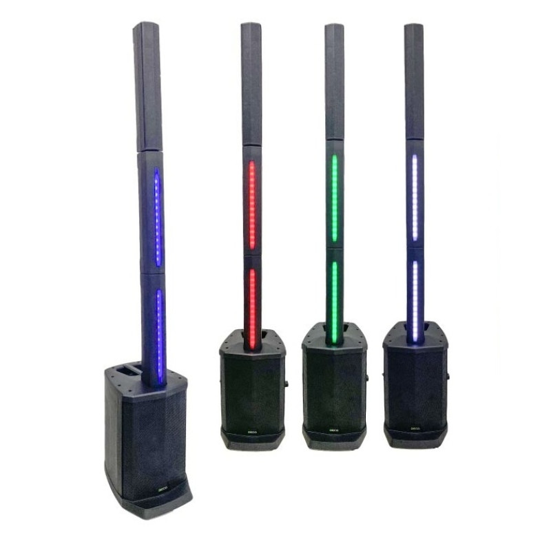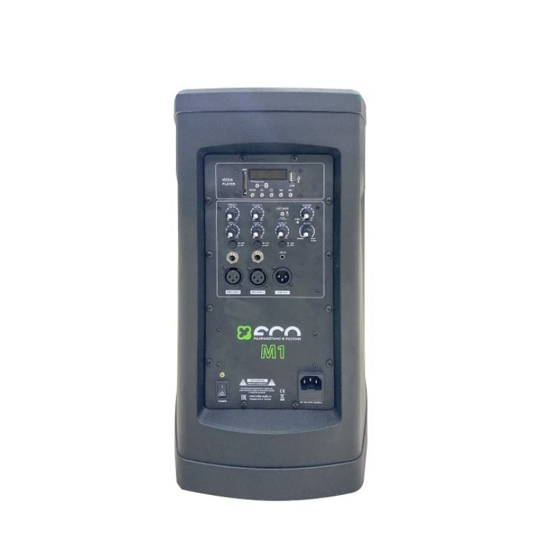 В сабвуфере, оснащённом 8-дюймовым динамиком, размещаются 2 усилителя класса D, микшерный пульт и мультиформатный аудиоплеер, способный воспроизводить файлы с USB-flash и SD-карт, а также с внешних устройств посредством Bluetooth.