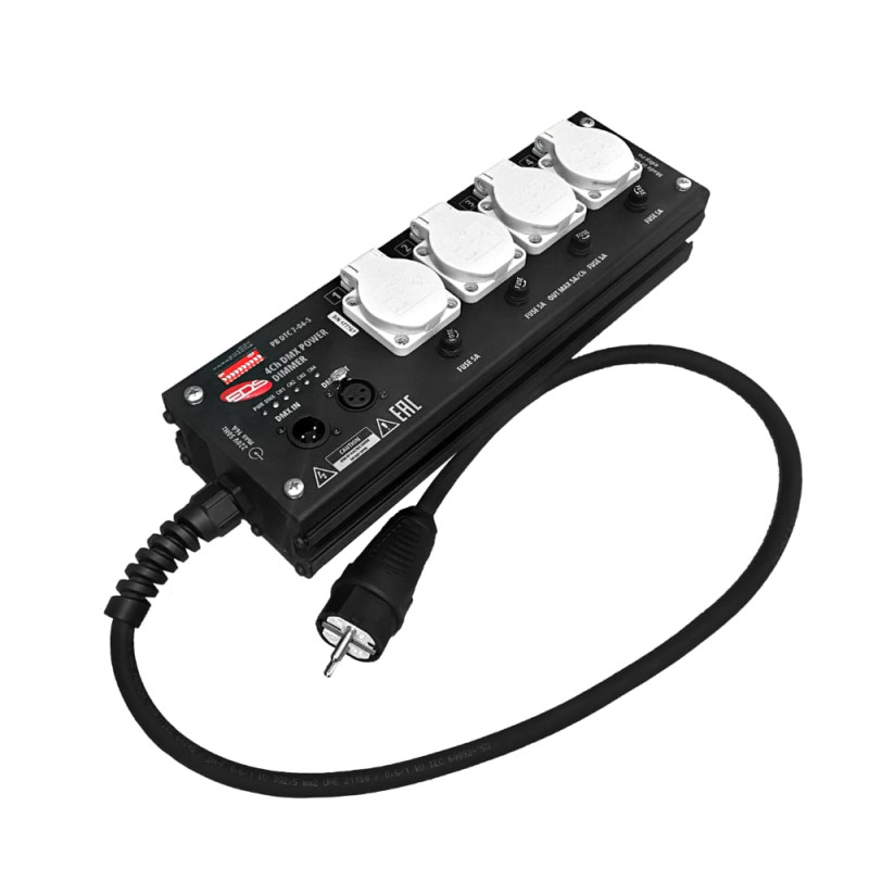 - Выход: панельная розетка 4хPCE Schuko 16A.