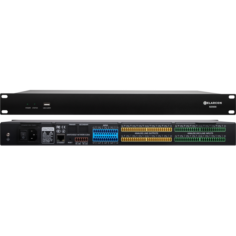 Elarcon ELD 1616 — универсальный процессор цифровых сигналов на основе архитектуры A -DSP, производительностью до 400 MIPS, 1600 MFLOPS, с фиксированными 16 аналоговыми входами и 16 аналоговыми выходами, и встроенным аудиоканалом USB, который может обрабатывать как аналоговые, так и цифровые сигналы.