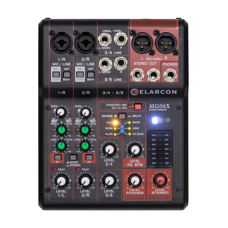 Elarcon MG06XU — это 6-канальный аналоговый микшер с USB Audio и эффектами.