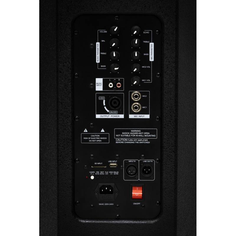 - Встроенный усилитель класса D 1500 Вт (3 × 500 Вт)