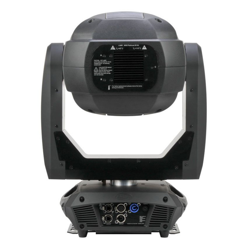 Оснащен новой лампой Philips™ MSD Platinum 20R 470W 80CRI с цветовой температурой 7.800К и световым потоком 23.000 лм, зум при режиме Beam - от 2.3° до 23° и при режиме Spot - от 3° до 32°, цветовое смешивание CMY плюс фильтры цветовой коррекции CTO.