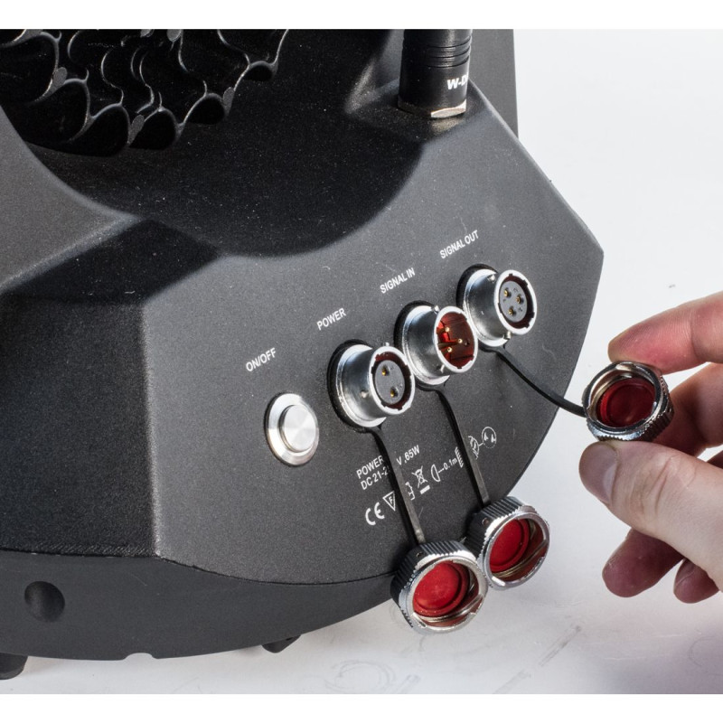 - Управление / Разъемы: 4 режима каналов DMX (4 / 5 / 11 / 12); Внутренний беспроводной EWDMX ресивер; Четырехкнопочная панель управления; ЖК-дисплей; Входы/выходы IP DMX; Силовой вход IP Power Charger In
