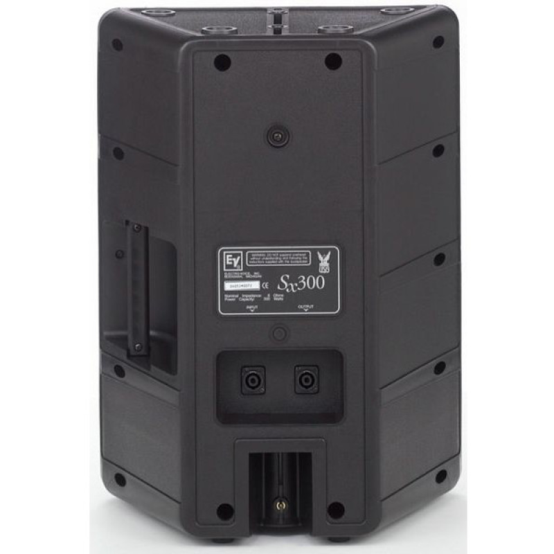 Electro-Voice Sx300E одна из самых популярных акустических систем в ассортименте компании. Бестселлер продаж. Вызвано это возможностью применения в различных областях: от использования в мобильных комплектах, до фиксированных инсталляций на спортивных аренах, в торговых центрах и т. д. Используется высокочастотный драйвер с 1.3" титановой диафрагмой, Electro-Voice DH2010A, обеспечивающий расширенный частотный диапазон до 20 кГц и низкочастотный динамик 12" Electro-Voice DL12BFH. ВЧ излучатель имеет схему защиты - PRO™. Применена уникальная геометрия горловины рупора ВЧ излучателя Varipath™, обеспечивающая ровное частотное покрытие без фазовых искажений и технология RMD повышающая «разборчивость» звуковой информации. Кабинет имеет трапециевидную форму. Предусмотрены резьбовые втулки для крепления и подвеса: 4 х М8 х 1,25 и адаптер для установки на штангу.