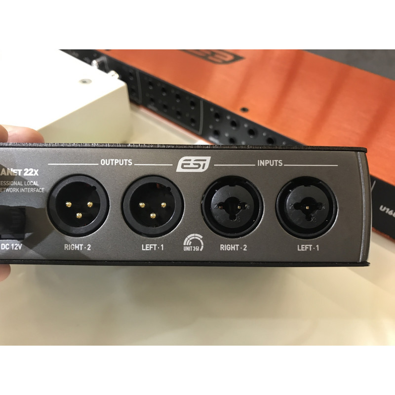 ESI Planet 22x звуковой интерфейс с двумя каналами и портом Ethernet. Предусмотрена интеграция в аудиосети (цифровые) Dante. Звук пишется с разрешением до 24 бит/192 кГц.