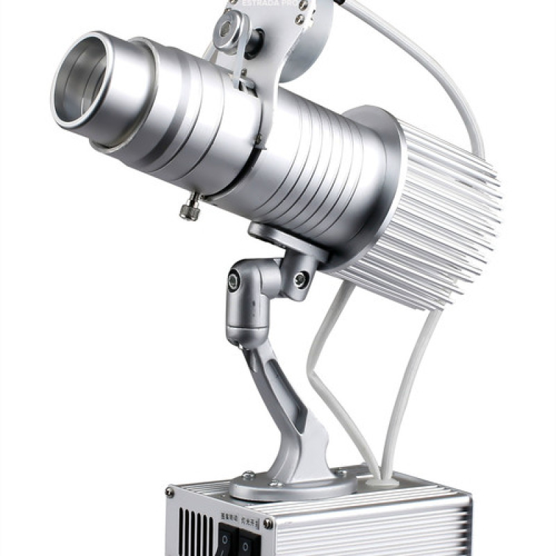 ESTRADA PRO LED GOBO 15 гобо проектор светодиодный со сменными гобо. LED гобо проектор - необычный и высоко эффективный способ привлечения внимания к вашему бизнесу, идеям, проектам, продуктам и т.д. Предназначен для проецирования текстовых сообщений, изображений, логотипов и т.п. Незаменим в рекламных целях, для проекции текстовых сообщений, изображений, логотипов, фотографий на выставках, в торговых центрах, на свадебных церемониях, вечеринках, при размещении информационных, предупреждающих и навигационных знаков, в конференц-залах, в клубах, ресторанах, кафе, гостиницах, аэропортах, супермаркетах, больницах, метро, в банке, в офисе и мн. др. Данный LED гобо проектор предназначен для использования в основном внутри помещений. При использовании на открытом воздухе рекомендуется разместить проектор под навесом во избежании попадания влаги.