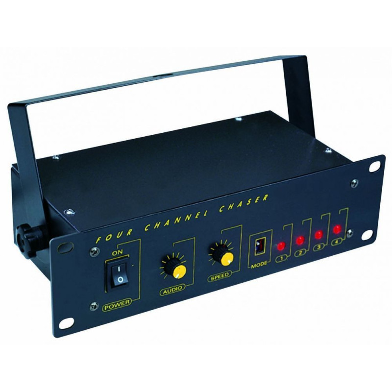Четырехканальный контроллер бегущих огней. Разработан специально для прожекторов PAR небольших эффектов. Имеет 4 встроенных программы и регулятор скорости.