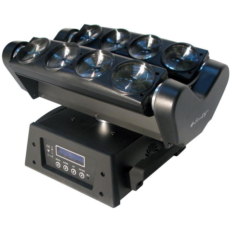 Светодиодный движущийся прибор с двойным лучевым эффектом типа "веер" без лиры. В приборе используются 8 светодиодов мощностью 12 Вт LED CREE (RGBW 4 в 1).