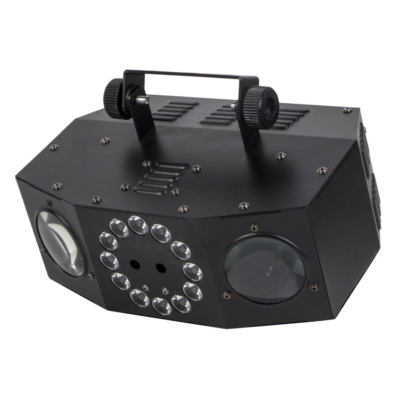 EURO DJ Mixlight IV комбинированный световой прибор 4 в 1!Сочетает три абсолютно разных эффекта: лазерный эффект (Laser), два светодиодный дискотечных эффекта (Gobo Moonflower + Agressor) и заливной эффект (Wash Light). По заданной программе, в одном из режимов работы или при управлении с DMX-контроллера, прибор создает целое световое шоу, которое раньше могли обеспечить только четыре разных световых прибора!Максимум эффектов при минимальном бюджете.