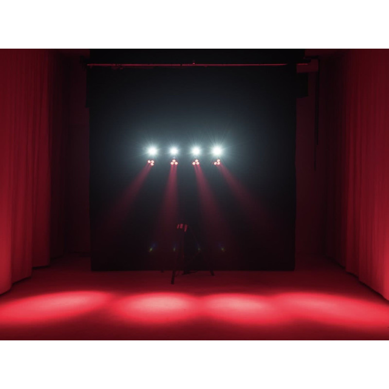 - Источники света 3 х 4 шт. 9 Вт RGB-светодиоды на прожекторах, 4 шт. 2 Вт белых/УФ-светодиодов на перекладине