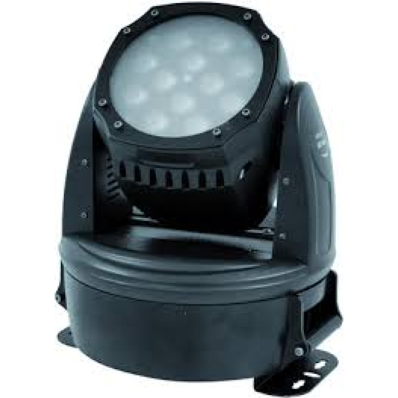 Вращающаяся голова с 12 x 9 W трехцветными светодиодами с RGB сменой цвета.
