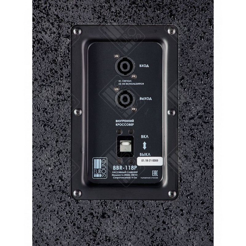 Eurosound BBR-118P пассивный сабвуфер 500 Вт, 1x18'', 4 Ом, чувств. 98 дБ, speakon x 2, фанера, лакокрасочное покрытие.Клубная серия BBR состоит из трех пассивных и четырех активных моделей. Каждый модельный ряд содержит две двухполосные системы и один сабвуфер. При этом активный сабвуфер доступен в двух корпусах: стандартном, глубиной 71,5 см, и компактном – всего 58 см глубиной для мобильных инсталляций.Кроме того, корпус акустических систем серии BBR представлен в двух корпусах на выбор: из MDF и из фанеры. Если предполагается размещение колонок на стойках или плоских поверхностях, то лучше выбрать версию серии BBR, выполненную в корпусе из MDF, покрытую карпетом. Если же необходим подвес систем, или предполагаются более суровые условия эксплуатации (например, повышенная влажность или даже небольшой дождь), то лучше отдать свой выбор версии из 18 мм фанеры с лакокрасочным покрытием. Тестирование серии BBR показало, что по качеству звука новая акустика EUROSOUND равна или превосходит популярные мировые бренды. При этом цена на акустические системы BBR ниже в два, а порой даже в три раза!