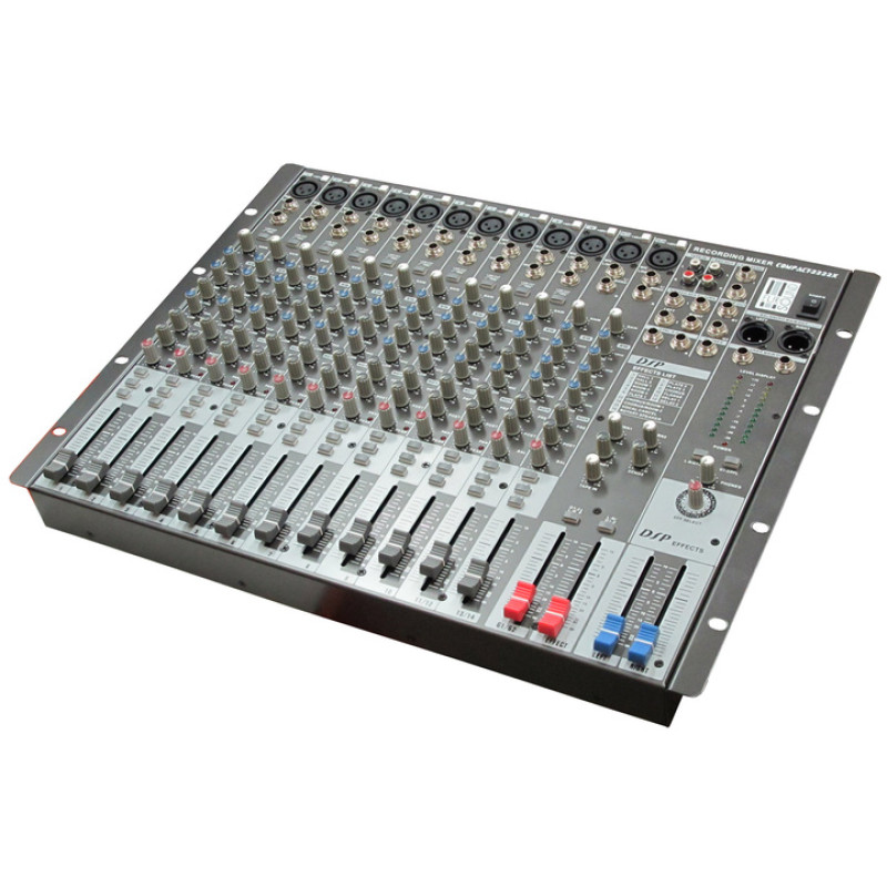 • 10 моноканалов с инсертами • 2 стереопары • 12 микр. предусилителей • Функция предпрослушивания PFL на каждом канале • 2 AUX шины (1 pre, 1 post, не переключаемые) • 2 стереовозврата • 1 стереоподгруппа • 3-полосный эквалайзер с параметрической серединой • 75 Гц Low Cut на моноканалах • 24-х битный высококлассный процессор эффектов. • Кнопка включения фантомного питания на каждом канале • Регулятор громкости входа Tape In • TRS и XLR выходы • Крепление в рэковую стойку.
