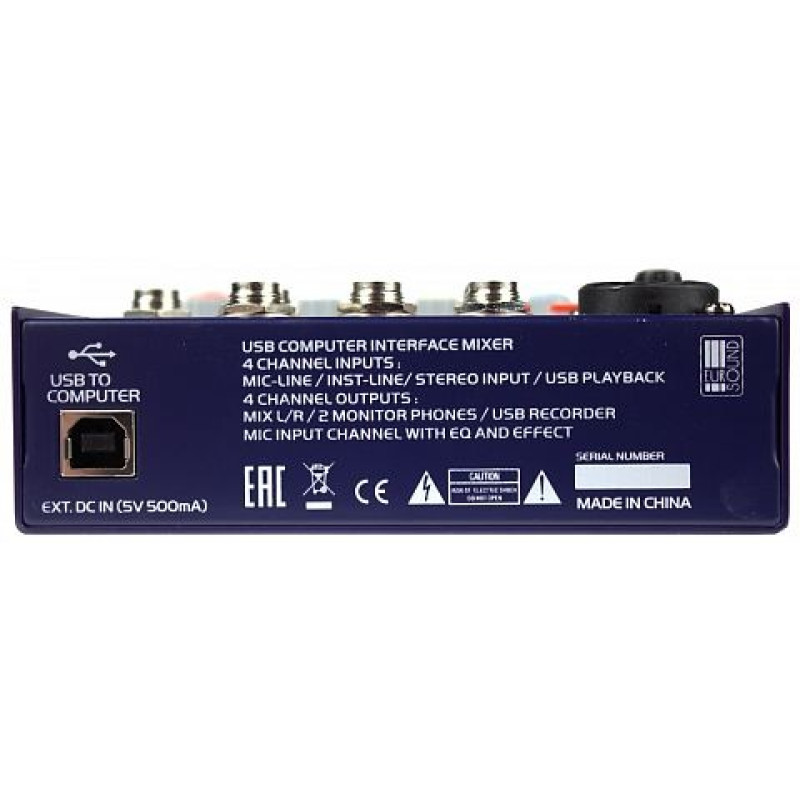 Евросаунд Compact 4USB представляет из себя 4-канальный микшерный пульт со встроенным USB-интерфейсом для небольших любительских домашних студий, мобильного диджеинга, одиночных живых музыкантов, блогеров, любителей компьютерных игр, а также для простейших систем фонового озвучивания.