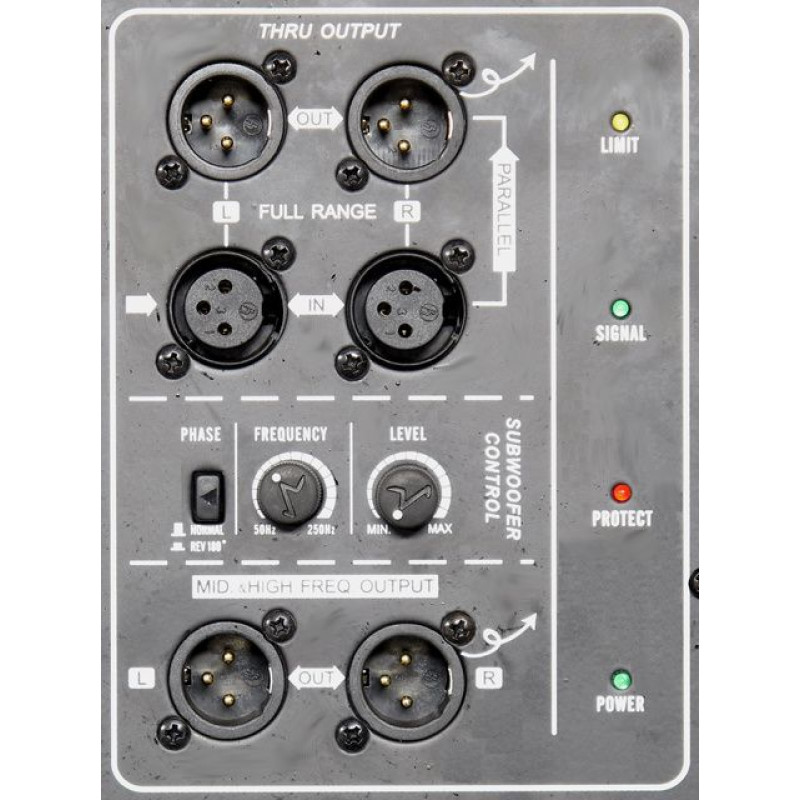 EUROSOUND S118A активный субвуфер.Новая серия активных субвуферов, состоящая из двух моделей: S115A – на 15-дюймовом динамике, и S118A – на 18-дюймовом динамике. Корпус субвуферов выполнен из фанеры и MDF. Линейные входы и выходы выполнены на разъемах XLR, позволяют подключать сразу правый и левый каналы. Одна пара выходов – это сквозной параллельный выход для подключения аналогичного субвуфера или любой другой широкополосной активной системы. Сигнал на вторую пару выходов идет с выхода активного кроссовера, поэтому в нем отсутствуют частоты ниже установленной частоты среза, которую можно изменять от 50 до 250 Гц. Этот выход предназначен для подключения активных сателлитов (либо пассивных с усилителем). Для удобства транспортировки субвуфер комплектуется съемными колесами, два из которых имеют фиксаторы.Модель S118A рекомендована для использования с АС PORT-15 и PORT-15A, для этих моделей на верхней панели субвуфера имеются углубления под ножки.