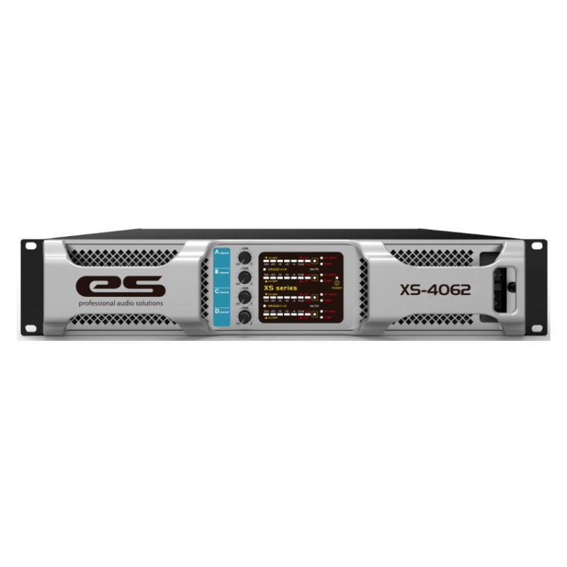 EUROSOUND XS-4062 усилитель мощности 4-х канальный.Серия туровых усилителей, относящаяся к гибридному классу, сочетающему исключительную эффективность усилителей класса D с высоким качеством звучания усилителей класса B.Для максимальной гибкости при построении систем усиления данные усилители позволяют регулировать входное усиление в диапазоне от +23 дБ до +44 дБ, что позволяет подобрать оптимальные параметры сигнала для достижения оптимального баланса между запасом по мощности и уровнем шума.Функция ограничения максимального напряжения на выходе (VLM) позволит быть уверенным, что выходной уровень ни при каких обстоятельствах не превысит установленный уровень. Такая функция необходима при использовании с акустическими системами меньшей мощности.Также присутствует функция ограничения по силе тока (CLM), которая защищает выходной каскад усилителя при возникновении короткого замыкания или чрезмерно низкого сопротивления.Для защиты ВЧ драйверов имеется функция защиты от высокочастотных шумов. Эта функция распознает постоянный сигнал высокой частоты, примерно от 10 кГц, который не встречается в “естественных” источниках сигнала, таких, как музыка или речь и выключает выходной канал на 6 секунд до следующей проверки.