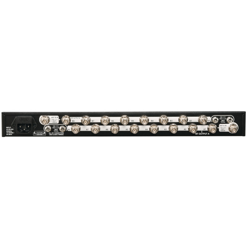 Сплиттер AS59Q имеет широкий диапазон частот (470–870 МГц), по 8 выходов для распределения сигнала с каждой антенны, 2 выхода для каскадирования, 4 выхода для питания радиосистем и 2 выхода для зарядки через порт USB 4,7 В.