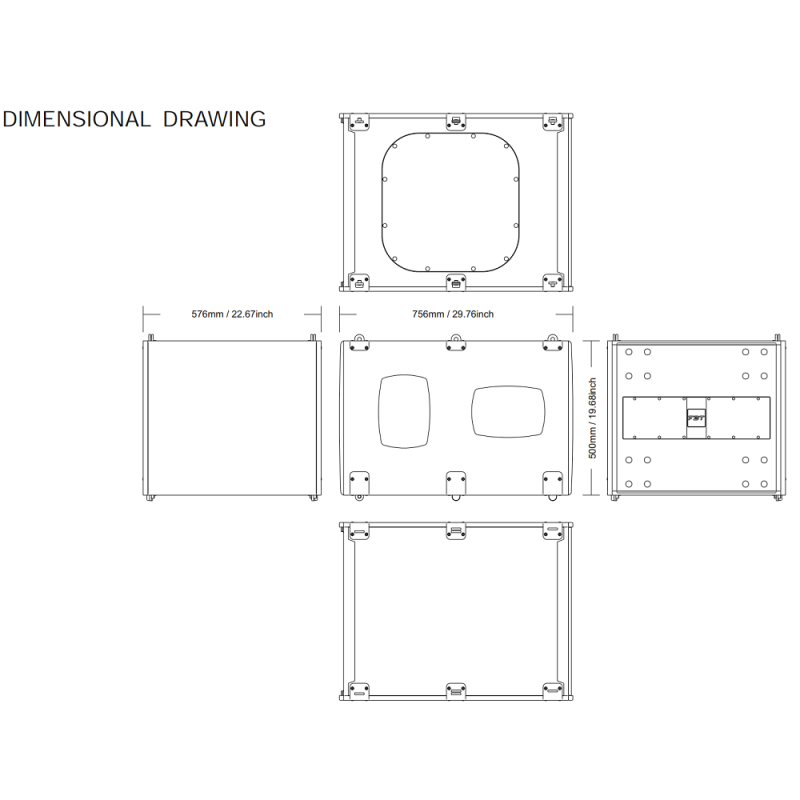 Корпус выполнен из многослойной фанеры балтийской березы толщиной 18 мм, стальная решетка с порошковым окрасом защищает лицевую часть. Габаритные размеры 576x538x756 мм, вес 43 кг. Монтаж напольный или на подвес MT-F 212 с направлением "вперед". Для удобства переноса предусмотрены ручки. Черный цвет.