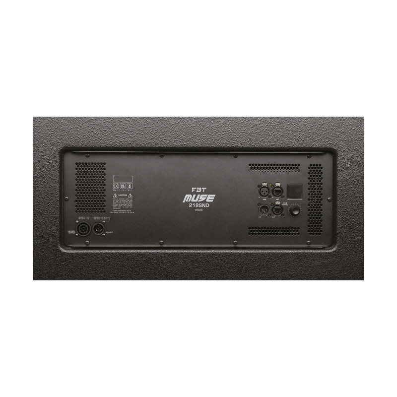 FBT MUSE 218SND — Это сабвуфер прямого излучения, оснащенный двумя динамиками B C с длиной хода 460 мм, звуковой катушкой 100 мм и усилителем класса D мощностью 4000 Вт с уровнем звукового давления 148,5 дБ.