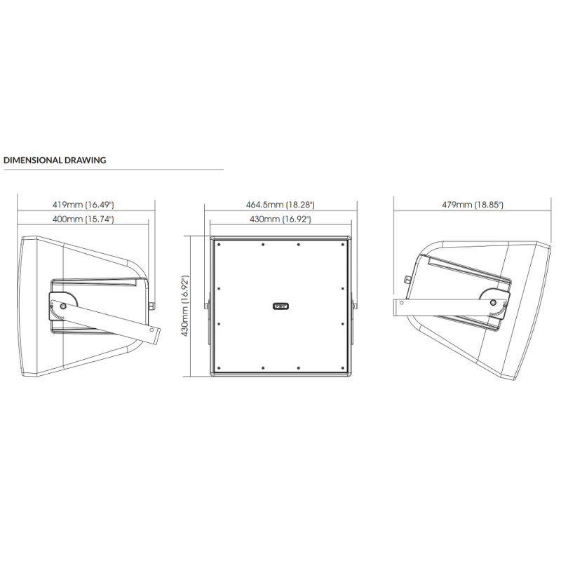 Литой корпус из полиэтилена и металлическая решетка с трёхслойной защитой от влаги, исполнение АС на уровне IP55. Габаритные размеры 430х430х400 мм, вес 21 кг. Монтаж настенный, U-образный кронштейн в комплекте.
