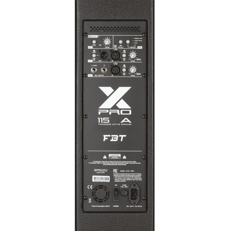 FBT X-PRO 115A - это активная двухполосная профессиональная акустическая система, имеющая встроенный 3-канальный микшер, Bluetooth-приемник и DSP-процессор.