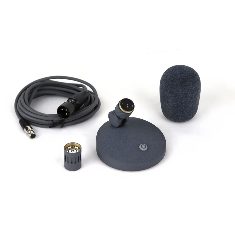 Подключение производится через разъем mini-XLR (male) 3-pin, в комплекте с микрофоном поставляется поролоновая ветрозащита и микрофонный кабель длиной три метра с коннекторами mini-XLR (female) 3-pin / XLR (male) 3-pin. Цвет микрофона - матовый серый.