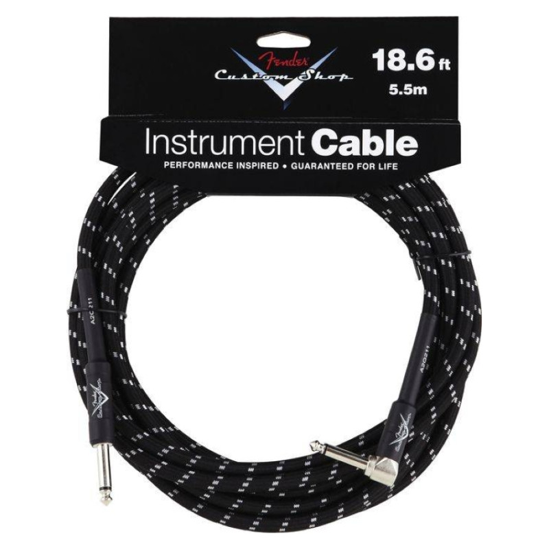 FENDER CUSTOM SHOP 18.6 ANGLE INSTRUMENT CABLE BLACK TWEED - Инструментальный кабель, 5,5 м, чёрная твидовая оболочка