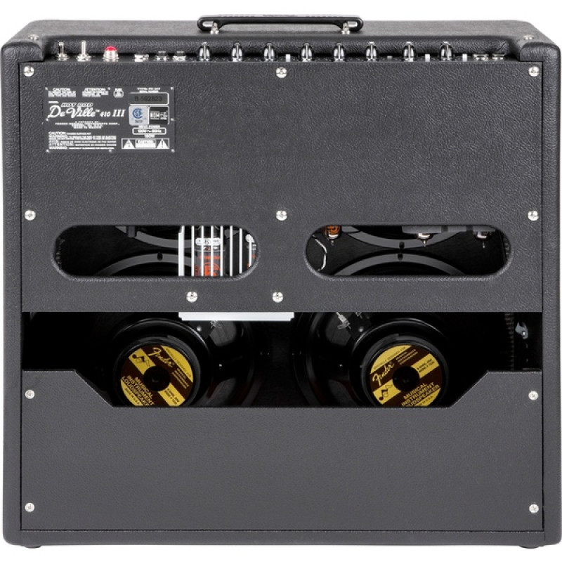 DeVille имеет мощность 60 Ватт, выходное сопротивление – 8 Ом. Внутри усилителя расположены 4 десятидюймовых динамика Fender® Special Design Eminence®. Эта классическая конфигурация была позаимствована у не нуждающихся в представлении моделей Super Reverb® и ’59 Bassman®. Необходимую гибкость звучания обеспечивают 3 лампы преампа 12AX7 и 2 лампы оконечного каскада 6L6. Усилитель оснащен встроенным пружинным ревербератором Fender и петлей эффектов.