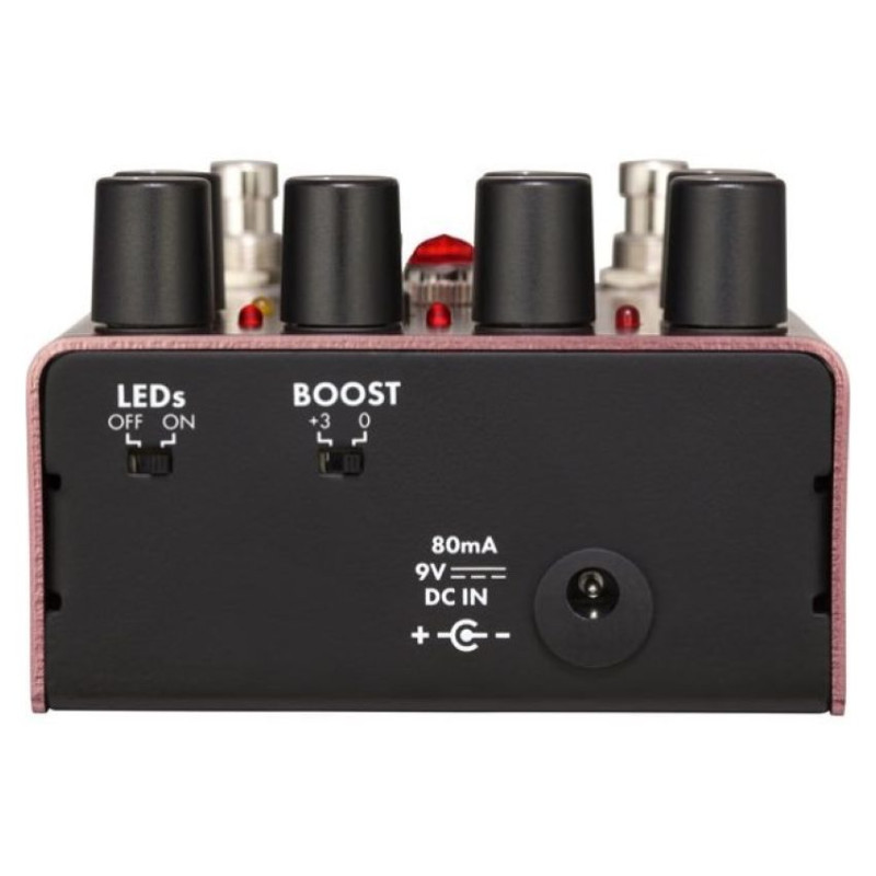 Для включения/выключения прибора и смены режимов Slow/Fast есть два ножных переключателя. Рядом с некоторые ручками присутствуют светодиоды, моргающие в такт частоты колебаний, а индикатор активности устройства представлен фирменным светодиодом Fender Amp Jewel красного цвета. Все регуляторы имеют отключаемую цветную подсветку. Вход и выход на разъемах 1/4'' Jack TS располагаются по бокам корпуса, сделанного из анодированного алюминия. Питание осуществляется от опционального адаптера на 9 V DC. Наконец, в зависимости от положения в цепи такие эффекты, как фейзер, могут «просаживать» громкость. Нивелировать этот негативный эффект поможет переключатель Boost с положениями 0 и +3 дБ. Он располагается на верхней части корпуса рядом с разъемом для питания.