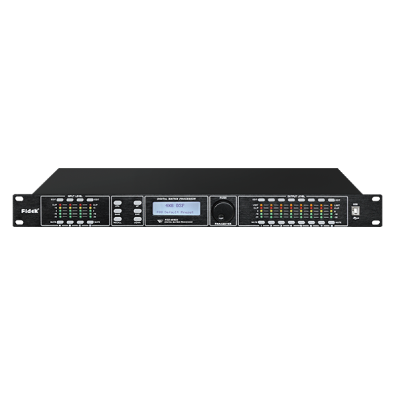 Часть входной обработки включает в себя обрезку высоких и низких частот, 8-параметрическую эквализацию, шумоподавитель, усиление, отключение звука, фазу, задержку, регулировку связи и другие функции обработки.