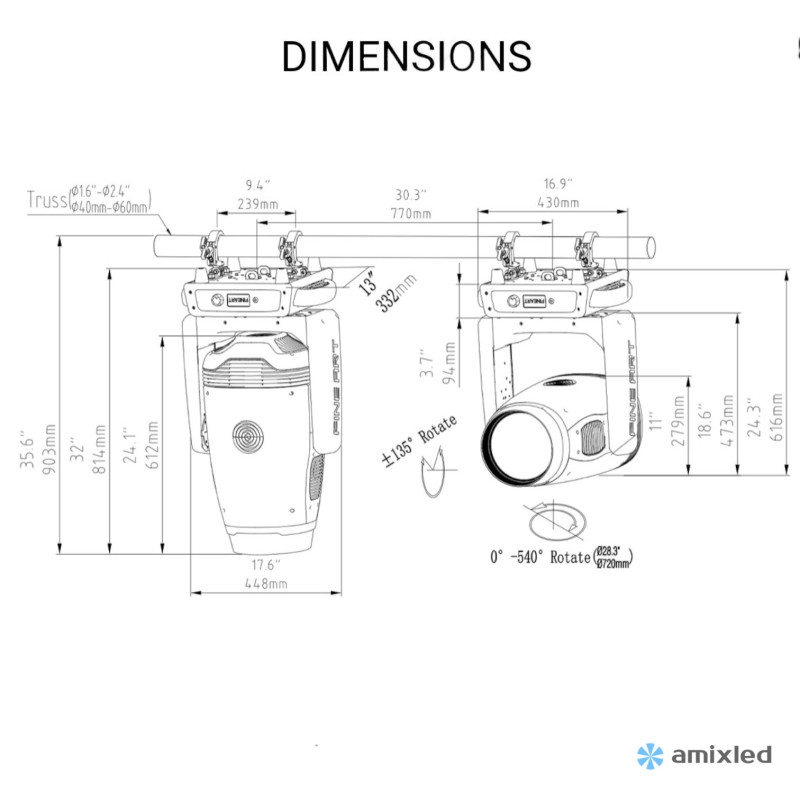 - Pan 540° / Tilt 270°