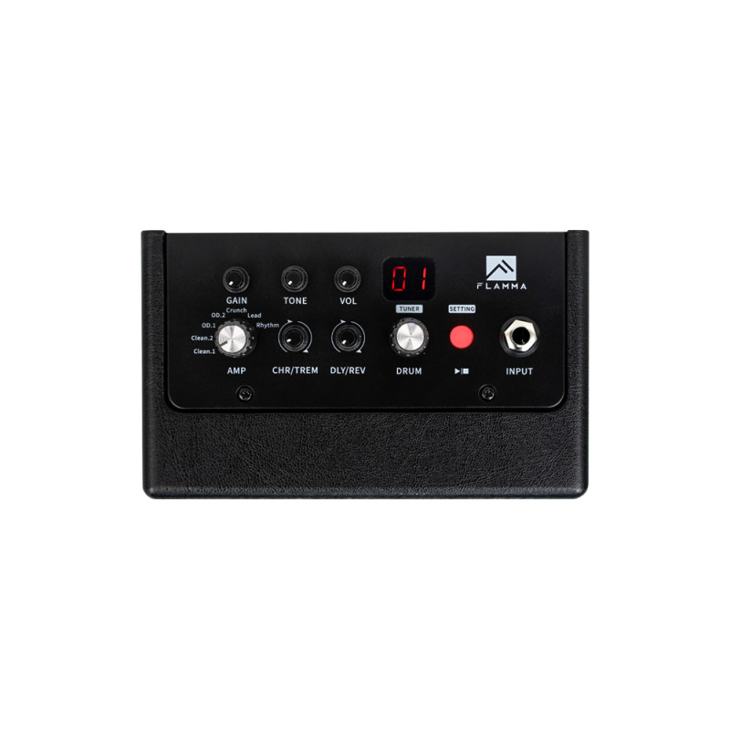 FA05 позволяет пользователям подключать предпочитаемые ими устройства через Bluetooth или через дополнительный аудиовход. Усилитель также оснащен разъемом для наушников для бесшумных занятий в любое время суток. FA05 имеет два чистых канала, два канала OD, а также канал кранча, лида и ритма, которые легко выбираются с помощью ручки. Кроме того, в усилитель включены эффекты реверберации, задержки, хоруса и тремоло, которые легко настраиваются из пользовательского интерфейса усилителя. Чтобы поднять уровень занятий на новый уровень, выберите один из 40 барабанных ритмов одним нажатием кнопки.